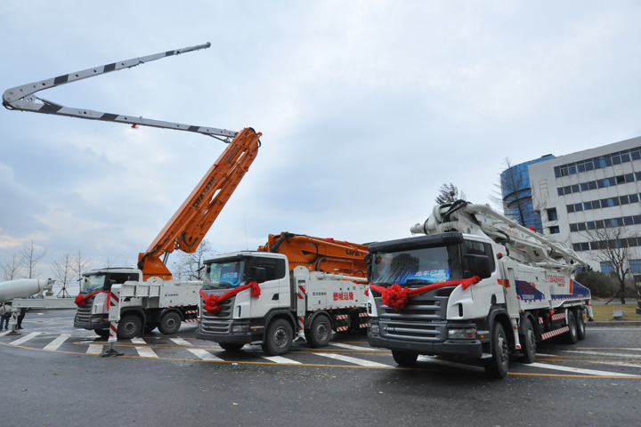 中联重科第一台碳纤维62米长臂架泵车成功交付客户