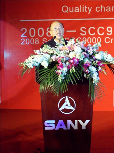蔡惟慈副会长指出,大型履带起重机多用于大型设备的吊装就位作业,其使命既光荣,责任也重大,承受不起出现重大设备质量事故的风险。他表示希望三一集团的同志们慎之又慎,切实地将敢于创新的勇气与严谨细致的科学作风统一起来,戒骄戒躁,兢兢业业,加强质量管理,确保设备可靠性,坚持不懈地塑造三一品牌的良好形象。他欣慰的讲述07年8月他在三一集团长沙本部看到的三一为提高产品可靠性作出的扎扎实实的努力的场景,并表示他相信三一的努力一定会赢得越来越多的用户并祝三一集团在新的一年里,在产品自主创新和企业做大做强的征程上再传捷报!