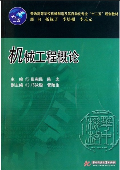 根据机械工程技术的基础性、入门性、全面性、前瞻性的要求,《机 械工程概论(普通高等学校机械制造及其自动化专业十二五规划教材)》由 张宪民、陈忠主编,从机械设计、机械制造、机电控制三大部分,按照一 定逻辑路线组织内容。在机械设计部分,从简单的力学知识到机构、零件 、机器与创新设计;在机械制造部分,从原料到毛坯制造、少无切削的成 形技术、传统制造、非传统制造;在机电控制部分,从机电控制基础到检 测与传感、分布式控制技术,全面而简略地阐述了机械工程的基础知识。