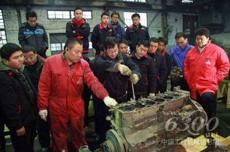 为提高培训的针对性,培训学院对从事摊铺机大修、维修的学员进行了系统调研,把学员的关注点,想学到的知识进行分析统计,制定了详细的培训大纲。培训班特意聘请了“北京方大恩劲柴油机技术服务有限公司”的三位专家。公司摊铺机等产品的动力装置是道依茨发动机,为提高学员判断与处理发动机故障的能力,特意从北京拉来一台173KW的BF6M/L1013ECP道依茨柴油机,作为学员的“实训机”,进行分解与装配过程控制教学用。培训分面授和实际操作两部分,面授教学中,专家老师重点讲解了道依茨发动机的构造及维修参数、道依茨发动机的装配过程控制、发动机故障诊断理论、检测数据分析、维修处理方法、发动机正确使用及注意事项等知识。实践教学中,重点讲解了道依茨发动机的燃油控制系统的拆装方法、常见故障排除部位与现场处理、发动机故障点现场解析、发动机现场检查及检测(数据)、发动机现场解体、装配的实训操作(工艺过程),实践课充分让学员动手,老师解答学员的提问,很受大家欢迎。