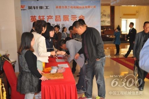 随后,英轩重工承德区域产品展示会在当地的行宫大酒店举行,这是承德最大的五星级场所之一。从十点开始,受邀客户陆续到达会场,得到了现场工作人员热情周到的接待,从签到、安排就座、交定金到领取抽奖券,我们看到的是一张张温馨的画面和热情的笑脸。