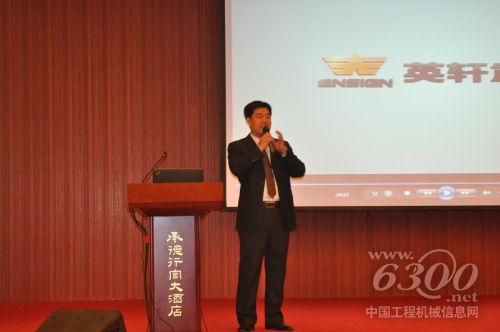 10点50分,英轩重工承德区域产品展示会正式拉开序幕。会议首先播放了英轩重工的宣传片,英轩重工大区经理刘世秀先生上台致辞。刘总介绍了英轩的发展史、过硬的产品质量和给力的促销、优惠政策,表达了英轩人竭诚为客户服务的决心。