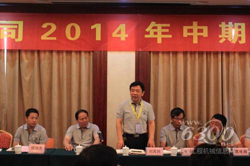 代总“诚信与担当”为主题做总结发言,他对行业形势和环境进行了分析,指出2014年对行业来讲是最困难的一年,呈现出旺季不旺的情况,但也要增强信心,统一思想、统一意志,坚定依靠发展和拼搏才能生存的信念,坚持合作共赢,共同发展的路子不能变,坚守市场阵地不能丢,坚信行业复苏是趋势,表示和日韩国家工程机械发展比较,中国工程机械的市场空间仍然很大,行业前景十分光明,号召全体经销坚定行业大有作为的信念和信心,共同担负起行业发展的大任,为民族工程机械品牌崛起做出贡献。