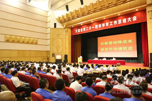 方圆集团董事局主席高秀作方圆集团2014年半年工作总结报告。高秀主席在报告中指出,今年上半年,方圆集团紧紧把握“适应形势,优化结构,促进企业可持续发展”的总体方针,积极应对市场变化,创新企业管理,采取有力措施,充分调动企业经营者、管理者及全体员工的积极性、主动性和创造性,凭借着方圆集团雄厚的资金实力,凭借着方圆集团四十四年的经验积累,凭借着方圆集团的品牌知名度和影响力,凭借着全体方圆人的顽强拼搏、团结努力,企业保持着持续、稳步、健康发展的势头,在不同层面、不同领域展现出新的气象、新的风貌和新的亮点,特别是相继两次举办方圆集团建机产品展示订货会,对外展示形象,对内凝聚力量,产生良好效果,得到各级领导、社会各界的一致好评。高秀主席强调,2014年上半年,是方圆集团顺应形势、把握市场的上半年,是方圆集团强化管理、稳健发展的上半年,是方圆集团坚定信心、开拓进取的上半年,也是各项工作持续、稳步向前推进的上半年。