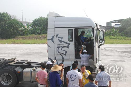 重卡司机们在路演现场踊跃试乘试驾感受汕德卡