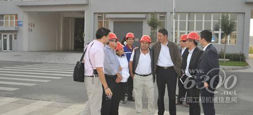 王总在总装一车间门口亲切迎接贵宾,同时也是迎接与其有八年友情的老朋友,王总亲自代理客户参观工厂,并给客户讲解重工新厂区全貌。