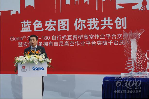 第二吉尼常州工厂是是唯一一家在中国率先全部按照国际化标准来生产全系列高空作业车的。第三在安全方面,吉尼也积极和国家安监部门做很多的沟通,推动更高的安全使用方面的立法以及强制执行。我们还有一个非常棒的团队,提供现场的24小时不间断的服务提供。因为对租赁公司来说,设备需要持续进行运作,所以服务是否给力决定了宏信对我们是否有信心。因为宏信和吉尼上是长期战略合作关系,我希望以后在广度和深度上做得更好,所谓广度上,是希望国内区域内的扩张以及把海外租赁公司的经验带给宏信,让宏信在整个发展历程中少走弯路。