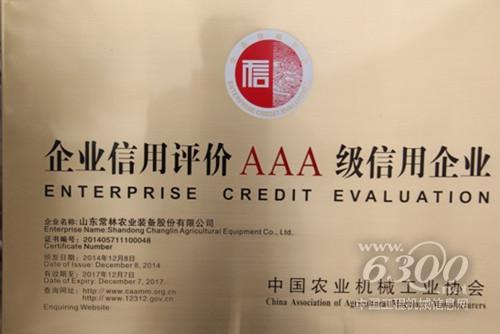 山东常林农装公司此前已荣获“中国农机AAA级信用企业”、“中国农机AAA级服务企业”等多项国家级荣誉。此次再次获评“中国农机企业信用评价AAA级信用企业”,标志着公司完善的信用风险管理体系、良好的经营状况进一步被市场和行业所认可,是中国农机行业对常林农装公司企业信用和突出业绩的充分肯定,对促进公司持续、健康、稳定发展具有重要意义。