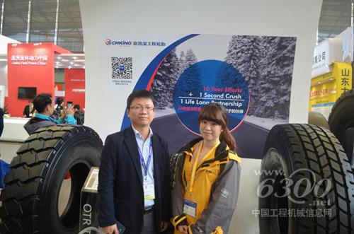 青岛泰凯英橡胶科技有限公司国内事业部经理龙睿与中国工程机械信息网编辑合影留念