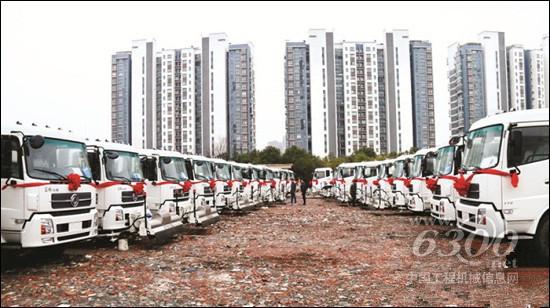 在重点攻关的扬尘整治过程中,为解决道路扬尘、渣土转运、建筑扬尘等一系列城市发展的固有问题,湖州市环境卫生管理处2015年通过公开招投标采购环卫设备。凭借优秀的产品性能、稳定的产品质量、良好的服务口碑和高性价比的优势,中联重科环境产业公司在激烈竞争中一举夺魁,顺利斩获包括路面高压冲洗车、喷洒降尘车、路面洗扫车等24台设备大单。获取订单后,为满足客户对环境治理的迫切要求,环境产业公司春节期间组织加班加点,确保及时交货,近日,24台车辆已全部交付湖州政府部门。