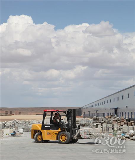 6月的阿勒泰,气候已十分炎热,大朵大朵的棉花云飘荡在万里晴空。一行人来到富蕴欧骆石业公司。刚从矿上运下来的花岗岩荒料码在公司广场上,闪着一道道令人艳羡的白光,煞是壮观。欧骆石业是阿勒泰地区石材工业重点龙头企业。在这里,10多台各类型厦工叉车年复一年、日复一日地辛勤工作着。它们主要负责大型石材荒料、成型板材的装卸、搬运等繁重工作。