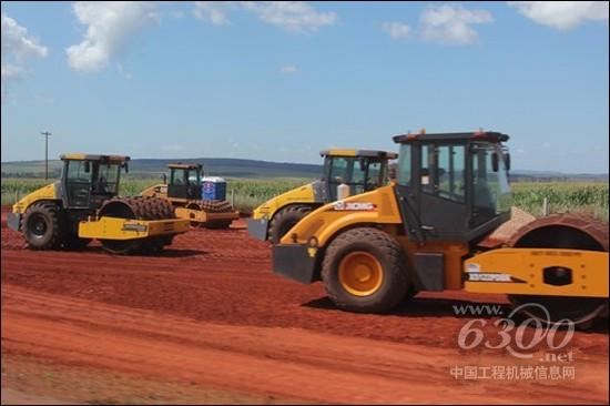 工程现场,成排成列的平地机、压路机、挖掘机、装载机与公路矿卡紧张作业。平土、压实、铲装、转运流畅衔接一气呵成,气势宏大的机群作业场面令人震撼。徐工产品傲世登场,欲与强手试争锋。平地机和压路机在作业机群中与欧美品牌等竞争对手并驾齐驱,施工效率和作业效果丝毫不逊色。据施工方负责人和操作手介绍,该工程月度设备综合评估结果显示:徐工装载机、压路机和挖掘机的综合性能指标接近老牌竞争对手的机器,性价比占优。特别是ZL50装载机强劲高效、XS122压路机振动有力和XE215挖掘机回转迅速等突出特点给巴西用户留下了深刻印象。