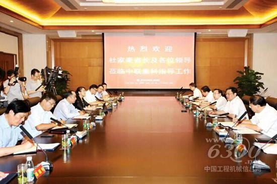 中联重科董事长詹纯新与公司在长高管热情接待了来访领导并参加座谈。