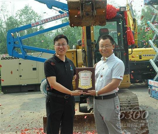 8月5日,易极拍第一台线上拍出的挖掘机交接仪式在北京经开万佳国际机械城隆重举行。易极拍执行总裁张凯、大客户总监李小新以及获得易拍线上第一拍的兴盛同辉工程机械有限公司总经理李响出席交接仪式。