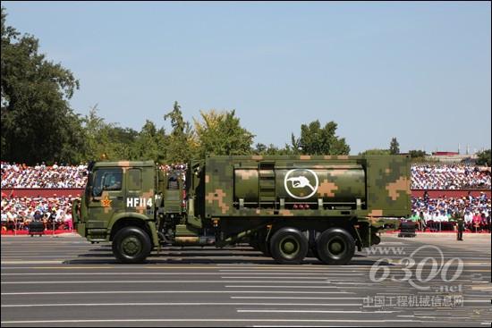 据悉,此次参加大阅兵的中联重科的整体自装卸补给车是一种集装、卸、运功能于一身的新型集装化运输车辆。除了能完成载货托盘的自装卸和运输外,还可以在一定范围内起重作业。该装备为我军军事野战仓库与后方基地间的物资补给提供了新的运输手段,主要用于集装、运输和存储弹药,进行器材补给等,是后勤保障中的重要设备。