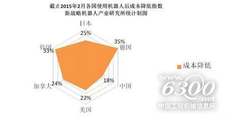 这是美国波士顿公司在今年2月10日发布的最新报告,他们对前两年全世界各个国家机器人应用做了一个统计,发现大量使用机器人后制造业成本大幅下降,韩国的成本降低了33%,日本降低了25%,加拿大降低了24%,美国和中国台湾降低了22%,中国降低了18%,这些都是平均水平。同时他们对今后十年也做了一个预测,机器人给制造业产业带来的成本降低是16%,中国综合成本最大的只差10%,也就是说,未来中国的制造成本优势将不复存在,制造业大国的地位也将一去不复返。