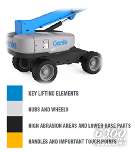 此次Genie ®S™-80自行式直臂型高空作业平台的全新设计语言主要体现在底盘和外壳两个部分。首先,底盘和外壳的边缘改为使用代表稳固和可靠的黑色。全新设计的外壳形状可以减缓意外冲击,顶面设计还有助于防止杂物和水沉积,延长外壳的使用寿命,使其更加坚固耐用与美观。产品设计的统一性能够使产品脱颖而出、更具竞争力。不仅如此,外壳上向下凸起的边缘设计是吉尼独一无二的“视觉标志”。