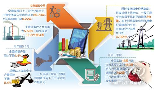 在政策“组合拳”下,今年前5个月,全国规模以上工业企业每百元主营业务收入中的成本为85.73元,比去年同期下降0.22元;主营业务收入利润率为5.59%,同比提高0.21个百分点。