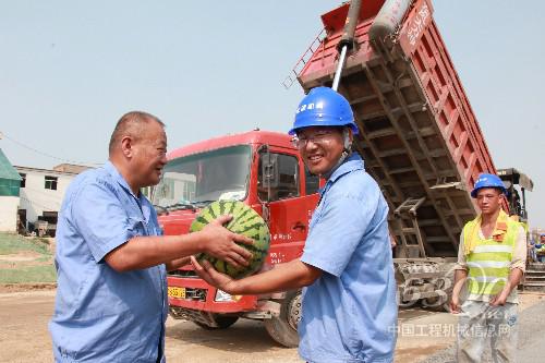 建设机械工程租赁公司为现场施工队员们送来了防暑降温的大西瓜