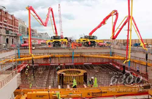 这项工程建筑成本为4600万英镑,于2014年7月正式开工。其主地基为24x24x3的钢筋混凝土结构, 包含由粗钢筋组成的环形模块加强结构,用以支撑主塔。地基浇筑于2015年5月至6月分四次进行,浇筑总量为4070吨。首层浇筑时,使用了四台普茨迈斯特混凝土泵车,分别为M47-5、M38-5、M36-4以及一台备用泵车。该项目要求采用环保设备,所有普茨迈斯特泵车均为欧6底盘。