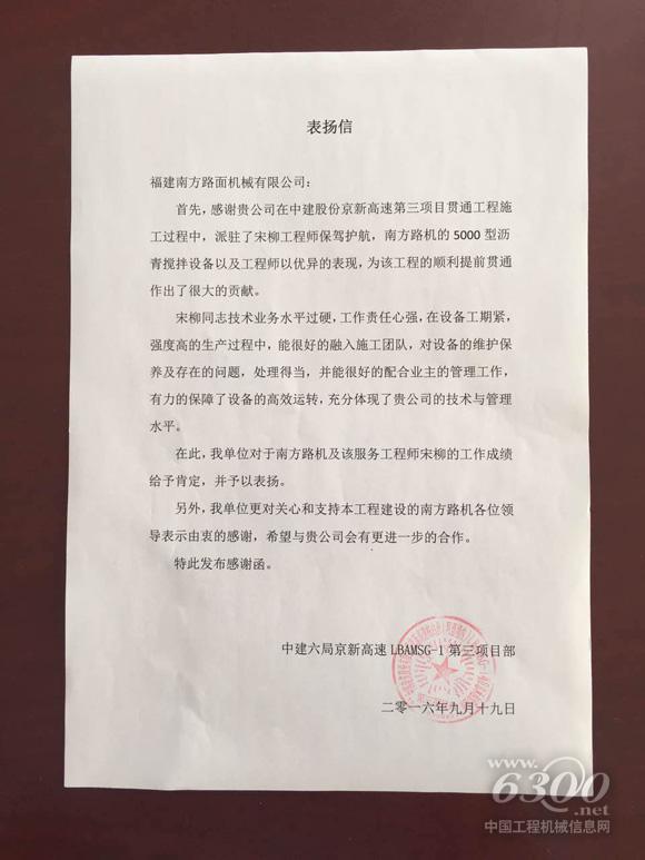 更要感谢您对南方路机“为中国制造赢得荣誉”的殷殷期望,