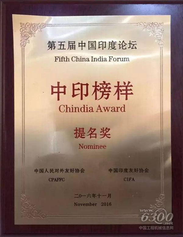 山东重工印度公司凭借其规范的公司管理、突出的业绩表现、优良的雇主形象、知名的品牌美誉度获得“中印榜样”提名奖。