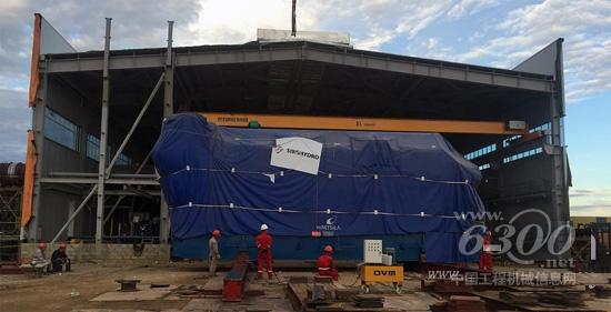经过前期的充分准备,9月12日完成现场6台80t发电机原地旋转90°后,11月4日首台300t发动机从港口运抵施工现场。