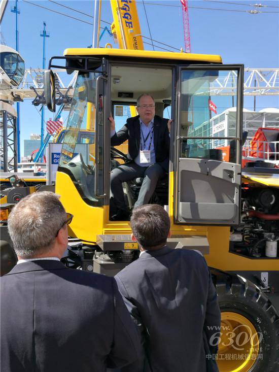 同时,临工展位也迎来了最重要的客人,Volvo集团CEO Martin Lundstedt先生和沃尔沃建筑设备CEO Martin Weissburg先生一行。两位CEO与临工进出口公司总经理王晓辉、总工程师迟峰及临工业务北美主管Alan亲切交谈,随后参观临工参展产品,Lundstedt先生更是兴致勃勃地登上L918F亲身体验,对L918F的表现十分满意,赞叹L918F无论是驾乘舒适性还是操作便利性,都是同行业的佼佼者。