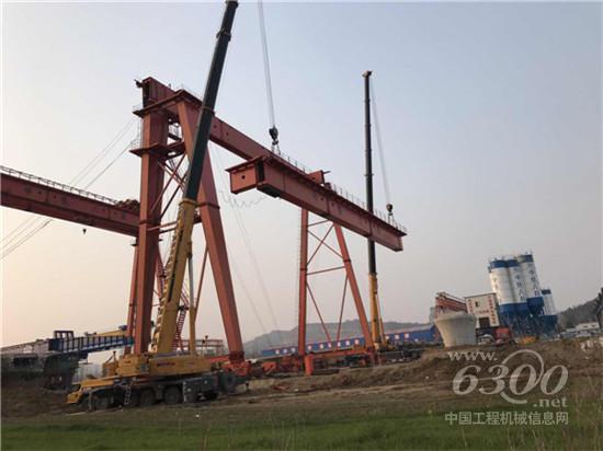 第一轮的比试是各自将重达65吨重的提梁机支腿吊至固定位置完成安装