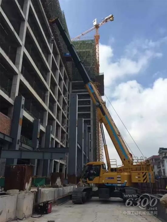 施工中的徐工XGC55T伸缩臂履带起重机