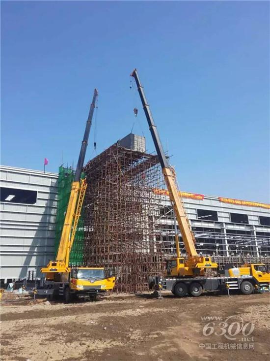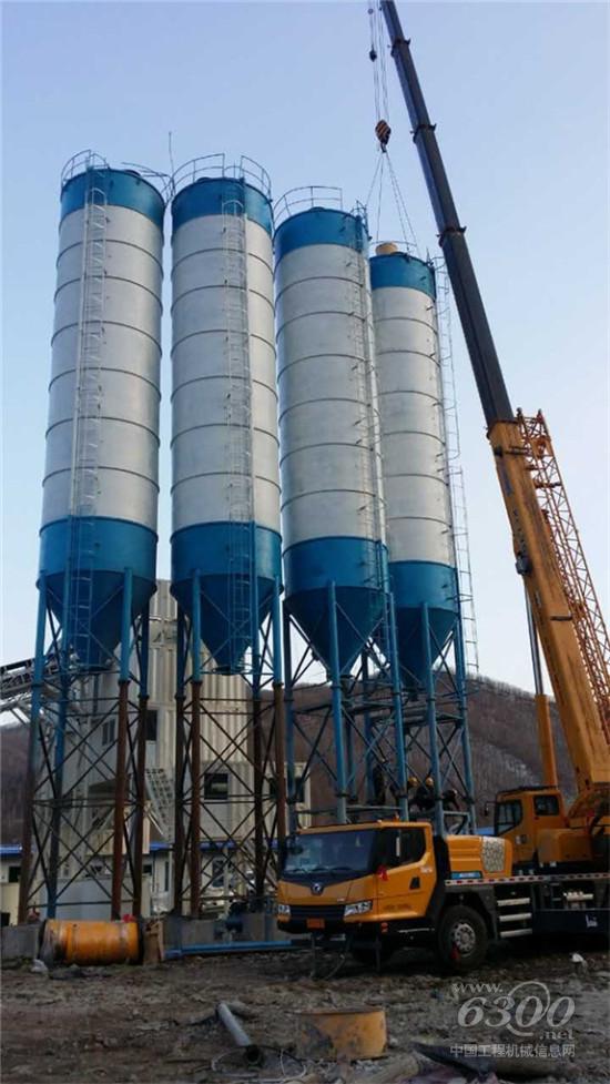 在和龙一处公路建设项目部,XCT35即将完成拌合站的安装任务,由于罐体高、距离远,在以往的类似工况中,大多使用50吨起重机进行吊装。但不到半天时间,XCT35就快速完成四个罐体的安装任务。