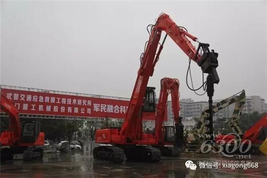 实战模拟演练以“多功能、智能化,全面落实推进军民融合深度发展”为主题,展示了研究所与厦工开展战略合作以来的阶段性成果。双方联合研制的应急救援多功能装备包括XG843 多功能挖掘机、XG843MH 抓料机、XG822i 高空破拆抢险智能挖掘机、XG822i 多功能智能挖掘机、XG836i 多功能智能挖掘机、XG958i智能装载机等产品。现场通过多种定制化属具的快速更换作业,以及驾驶舱、手机、PAD、便便携式控制器、遥控平台自由切换操控装备等一系列精彩的表演,展示了厦工应急救援系统解决方案,满足了武警交通部队现代化立体救援要求,确保了部队连续快速作战。