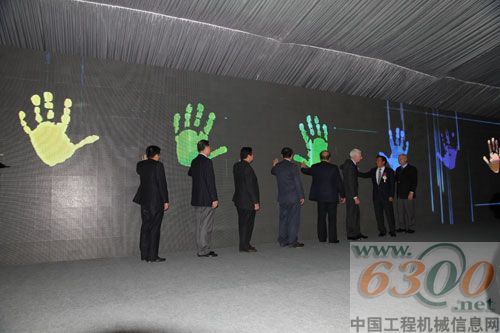 揭幕嘉宾手触LED显示屏迎接新品挖掘机登场