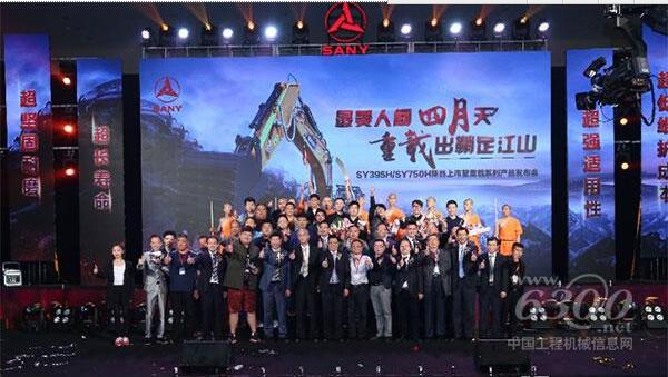 SY395H/750H挖掘机上市 三一重机完成重载系列全工况布局。图为上市活动现场与会嘉宾合影