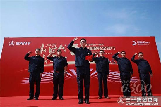 2017年5月25日,“新时代 新三一”——三一海工2017年价值服务全球行启动仪式在长沙产业园举行。三一海工携手全球服务团队及配套厂家,庄严宣誓:即将穷尽一切手段,全力解决客户问题,将客户满意度提升到新的高度。届时国内九大战区,全球各区域将出动300多名服务将士,近百台服务车,历时120天,主动点检及免费保养设备共2800台,全面拉开了2017年服务品牌建设的序幕。