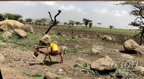 阿贝巴叶胡(Abebayehu Tarekchen)便是水窖项目的受益人之一。阿贝巴叶胡一家有五口人,夫妻俩和一个五岁的男孩,还有年迈的父母。他们家种了苔麸,小麦,玉米和一些蔬菜。家里的男主人阿贝巴叶胡每天早上6点,就要把家里的大小水桶挂在骆驼上,去十五公里以外的社区水池挑水,这一往返就是四个小时。每年旱季到来的时候,社区水池的水也干涸了,他就要去镇上买水,而每年买水要花去1800埃塞比尔(约500元人民币),这对并不富裕的家庭来说是一笔不小的开销。而且社区水池的水卫生没有保障,很容易引起腹泻和痢疾等疾病,尤其是儿童。这在当地医疗条件并不发达的埃塞农村是一个严重的健康隐患。