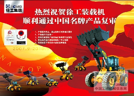 日前,徐工装载机顺利通过中国名牌产品复评。作为徐工科技在工程机械行业的长期合作伙伴,中国工程机械信息网(ycsqzl88.com)再次为徐工科技的品牌传播提供媒体支持,作为工程机械行业主流网络媒体,中国工程机械信息网为工程机械行业的发展提供了大力的支持。以强势网络媒体为平台,为工程机械名牌产品摇旗呐喊,将大大促进相关名牌产品的美誉度。