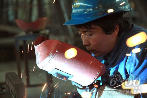沿着车间南大门走进去可以明显的感受到车间温度。由于是铆焊车间,电焊机、割炬等额外热源较多,且电焊作业对外部环境要求高,为防止焊接过程中由于保护气体保护不足产生气孔夹渣等各种焊接缺陷,焊接工作区域不能有流动风,所以车间不能开门通风,致使本已温度很高的车间更为闷热。对电焊工而言,由于工作特点,为了防止电弧和作业时产生的高温熔融状飞溅对皮肤带来伤害,即使是炎炎夏季也必须“全副武装”。在这种层层保护下,电焊作业非常辛苦,用不了一会汗水就会浸湿衣服,十分消耗体力。正因为这些原因很少有女性愿意来做焊工这份工作。但在陕建机股份公司铆焊一和铆焊二车间电焊班组中却有三名女将——雷变琴、李普莉、梁媛。她们是公司仅有的三名女焊工,一戴上面罩和安全帽,就根本看不出她们是女工。劳动强度、工作环境都与电焊班其他人一样,也不会因为她们的女性身份就能享受到特殊待遇,但她们干起活来从不输任何人。