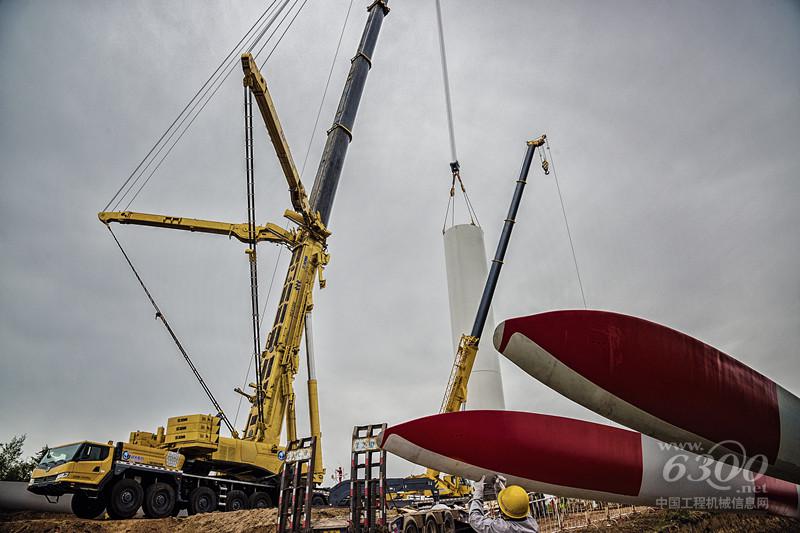 此次吊装的风机与以往区别很大,六节塔筒,高度达到100米,是智能微网项目最新试制的全新机型。今天的XCA1200将会全方位展现出在风电领域的领先技术和绝对优势。对于百米高度的挑战,XCA1200风电专用臂将发挥出前所未有的高性能和高效率。