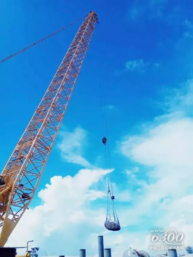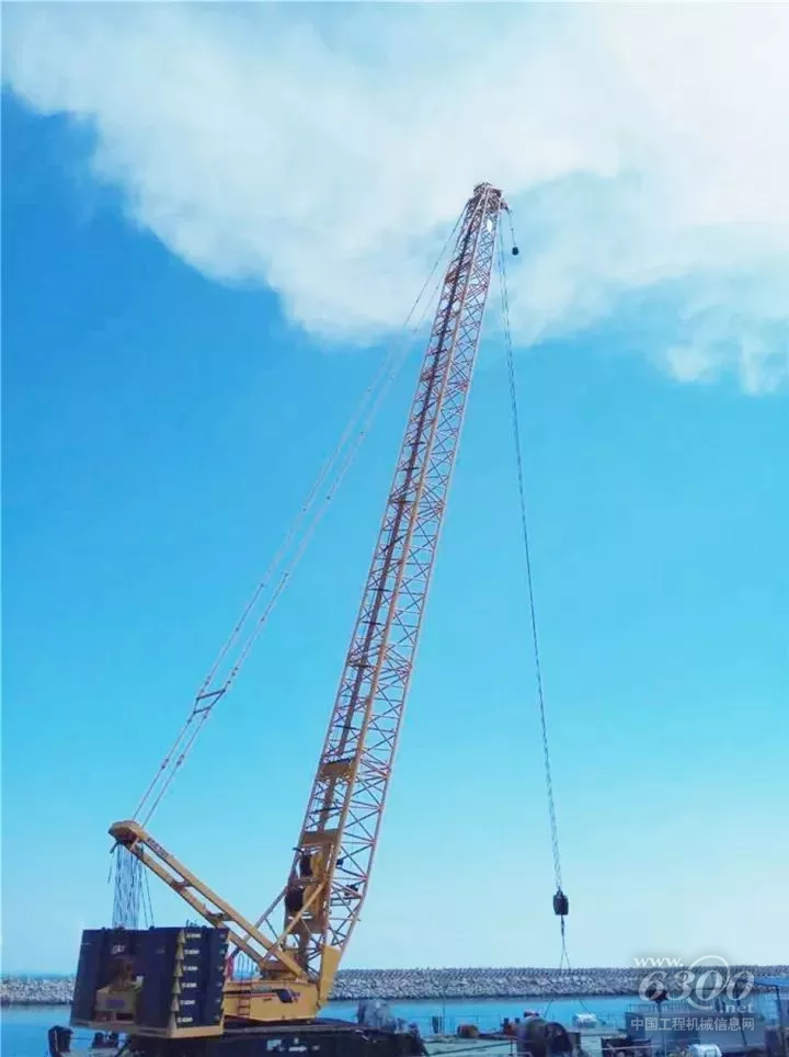 两台履带起重机主要负责将预支水泥桩和石块抛入海中,以构筑港口的防波堤。别看只是一吊一抛的简单动作,但是每天却要重复几百次,对起重机操作效率和稳定性都提出极高的要求。作为“XGC”家族系列中“销量”担当,两台产品果然没有令人失望,自投入使用以来,状态良好,与同工地的国外品牌产品相比毫不逊色,甚至更胜一筹。两台产品的优良表现,也是获得了工程业主方和使用客户的一致好评。