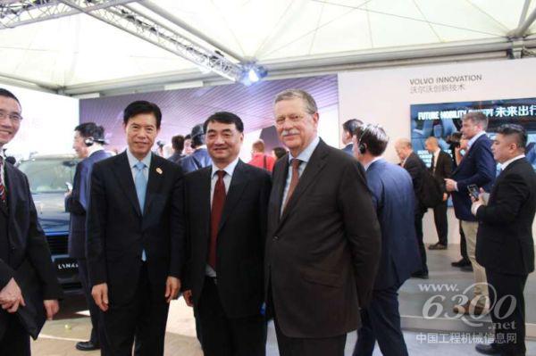 商务部部长钟山(左1),中策董事长沈金荣(左2)与贝卡尔特CEO(右)