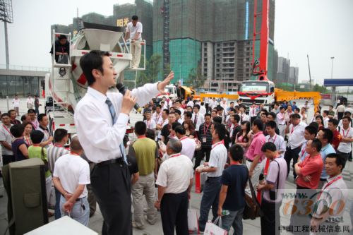 在了解了新产品的技术亮点及三一重工09年新的促销政策之后,嘉宾们来到室外展场进行参观。在成都川投国际酒店6000平方米的展示区里,身靓装的三一重工搅拌运输车和混凝土泵车、混凝土砂浆车、拖泵闪亮登场,10余台产品整齐摆放,气势恢宏,格外引人注目。