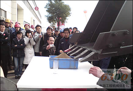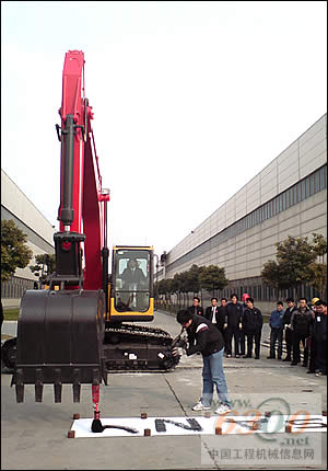 中国工程机械信息网(ycsqzl88.com)记者现场获悉,中国挖掘机协会秘书长陈正利先生以及三一重工向文波等领导和嘉宾亲自为SY205C-8挖掘机揭幕。随后三一重机公司组织媒体参观生产线并到调试现场观摩,其中调试场观摩环节让许多媒体印象深刻,只见操作手上机鸣笛,向观众做致意动作,挖机作各种集体动作,灵活的机臂竟然能够用大号毛笔书写三一的英文“SANY”,更神奇的是,挖掘机的挖斗可以准确的铲起沙地里的一个生鸡蛋,操作手的技术令人叹服之余,也显示出了三一重机在控制技术上的一丝不苟,精益求精的态度。
