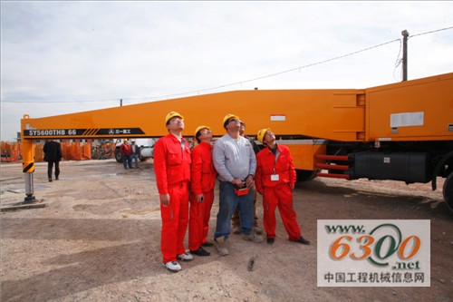 一些美国客商在66米泵车前驻足观赏泵送演示