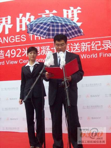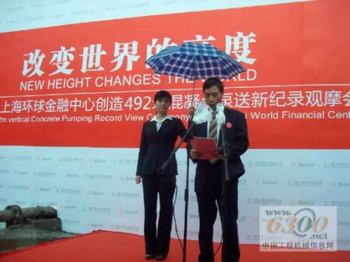 主持人袁鸣向三一重工客户及在场记者介绍上海环球金融中心及HBT90CH超高压拖泵