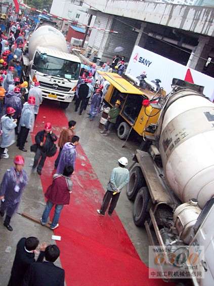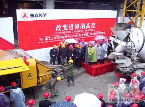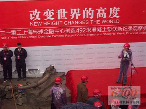 2007年12月10日下午4点,与会代表前往上海环球金融中心施工现场观摩。据中国工程机械信息网(ycsqzl88.com)获悉,虽然当天下起了蒙蒙细雨,但丝毫没有阻挡大家现场见证三一泵刷新世界纪录的浓厚兴趣。