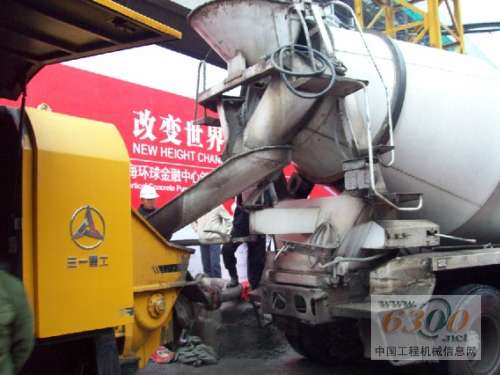 现场实况转播HBT90CH拖泵将混凝土输送至492米上海环球金融中心顶部