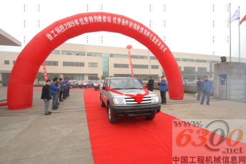 近日,徐工科技2009年优秀特约维修站、优秀备件经销商授车仪式在该公司南区小广场隆重举行,辽宁裕华、云南南方、晋城市长江等十家优秀特约维修站,齐齐哈尔东北建机等三家优秀备件经销商获得价值10万元的服务车大奖。授车仪式上,徐工科技营销公司部分领导、部门相关人员以及获奖经销商共计30余人出席了授车仪式。