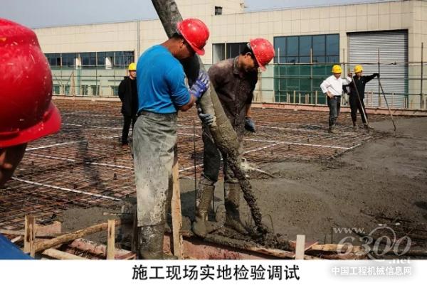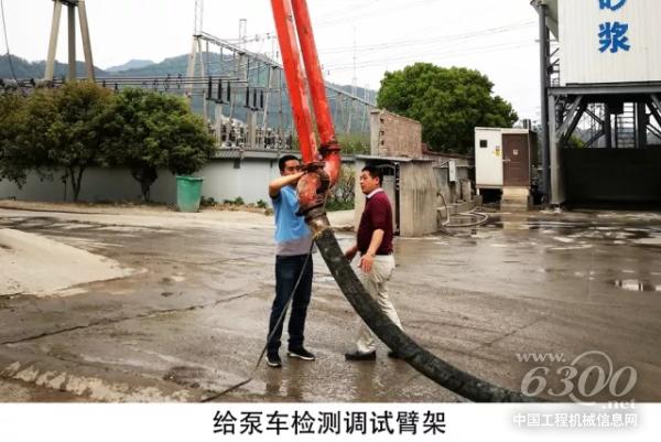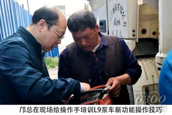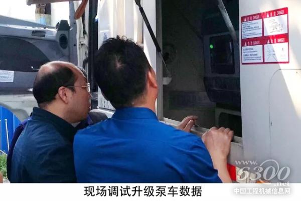 调研工程师在浙江凯得丽化工有限公司的施工现场为L9系列56米泵车进行程序升级,并对客户操作手培训升级后的新功能和操作技巧。操作手实际操作后,反馈新功能效果良好。