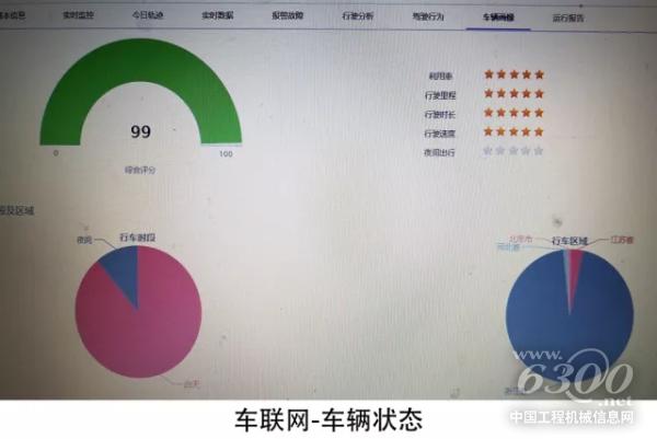 此外,调研队还在施工现场观测雷萨车联网平台数据,能够清晰地呈现车辆实时位置信息,可以实现实时数据更新、远程工况监控、行驶分析以及驾驶行为管理等功能。由此可见,车联网的技术和服务升级已经取得一定成果。